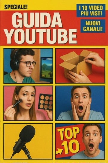 Ho proposto a Emanuele di creare insieme una Guida YouTube(™). Lui ci mette la conoscenza, io Claude. Capisco che è un accordo un po' sbilanciato. L’idea è ricalcare quelle riviste, come appunto la Guida TV, con i programmi video della settimana, le foto dei conduttori degli host, le interviste per capire chi sono, quanti anni hanno, la vita privata di – chessò – Malcom Pagani.