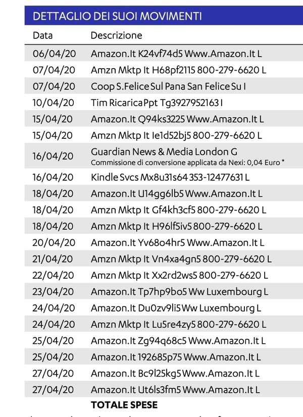 Preciso che il mio conto PayPal è già più differenziato, e che alcuni fornitori a km zero si fanno pagare ancora in contanti, qualcuno con Satispay. Però è davvero impressionante vedere come usiamo l'account Amazon condiviso in famiglia. La modalità più facile vince.